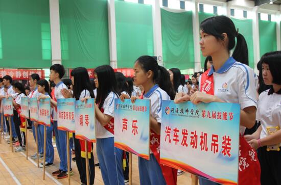 2016年5月19日上午,sunbet申搏第九届技能节隆重开幕。市政府常务副市长彭定邦同志,市委组织部副部长、市人社局局长苏晖同志,市人社局副局长张文胜同志,市人社局培训与技能教育管理科科长刘戈文同志,市教育局职业与成人教育科科长吴小波同志,学院领导班子及企业代表出席了开幕式。