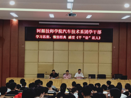 2018-11-19sunbet申搏官方网站 汽车技术系团学干部学习习近平新时代中国特色社会主义思想三十讲专题会为了使团学干部全面深入学习《习近平新时代中国特色社会主义思想三十讲》主要内容,汽车技术系于2018年11月6日在培训楼讲学厅召开专题讲座。汽车技术系石功名主任、谢平副主任、团总支书记...