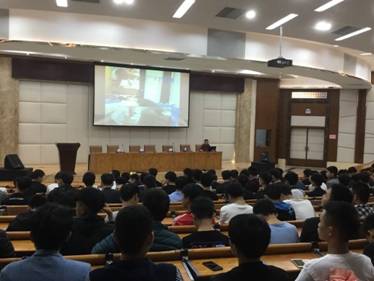 2017-12-01以德为先——汽车技术系举行思想道德教育讲座 为提升学生的思想道德水平,2017年11月16日晚,汽车技术系陈志朋老师在图书馆报告厅为系部2016级、2017级全体学生做了一场关于思想道德教育的精彩讲座,获得学生好评。 (图一)讲座现场 (图二)学生认真聆...