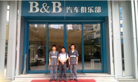 汽修教学部副主任谢平在深圳市洲安集团(奔驰、宝马)B$B汽车俱乐部与我校毕业生合影