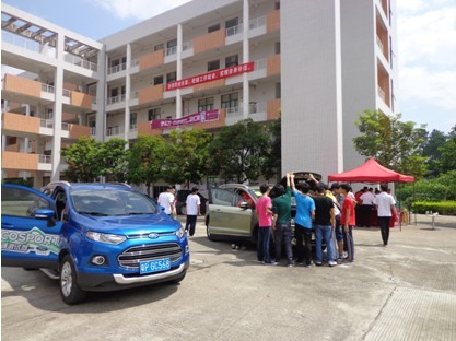 6月26日,我校汽修教学部和河源市共成汽车贸易有限公司在8号楼广场举办了长安福特汽车车展,我校优秀毕业生詹亮(2009级毕业生,现任福特4S店销售主管)和赖建文(2011级学生,现在福特4S店进行顶岗实习)回校联系并策划了本次活动。
