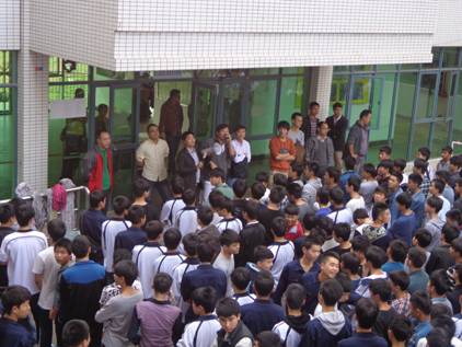 下午三点钟汽修教学部所有学生在A栋宿舍楼下集合,谢平主任就这次突击检查安排和内容向全体学生进行了说明,然后班主任及生活老师带领学生逐个宿舍进行检查,主要对宿舍走廊、阳台护栏,宿舍床、桌摆放不合格,对违章使用大功率电器、私拉乱接电线等安全隐患问题进行整改。