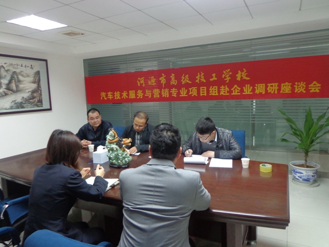 为将国家示范校重点专业的建设经验及成果推广到非重点专业,促进非重点专业改革发展。2014年1月9日—10日,汽车维修教学部张宇飞、刘国雄、李发船、刘超铭老师四人分别赴河源市汇源广本汽车服务有限公司、河源市汇源广丰汽车服务有限公司、河源市标远汽车服务有限公司、河源市中裕丰田汽车服务有限公司进行汽车技术服务与营销专业人才培养模式与课程体系改革的调研活动。
