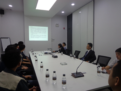 (图一)走访中企业人事部经理对13级学生代表讲解用工需求