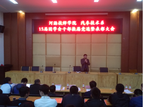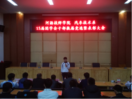 2017年3月9日晚7点半,汽车技术系团学会在培训楼讲学厅举行团学会干部换届竞选暨表彰大会。汽车技术系主任石功名、副主任谢平、副主任张洪军、团总支书记郑文富、评委张宇飞老师、梁海深老师、各系学生会主席和全体16级学生出席了此次活动。