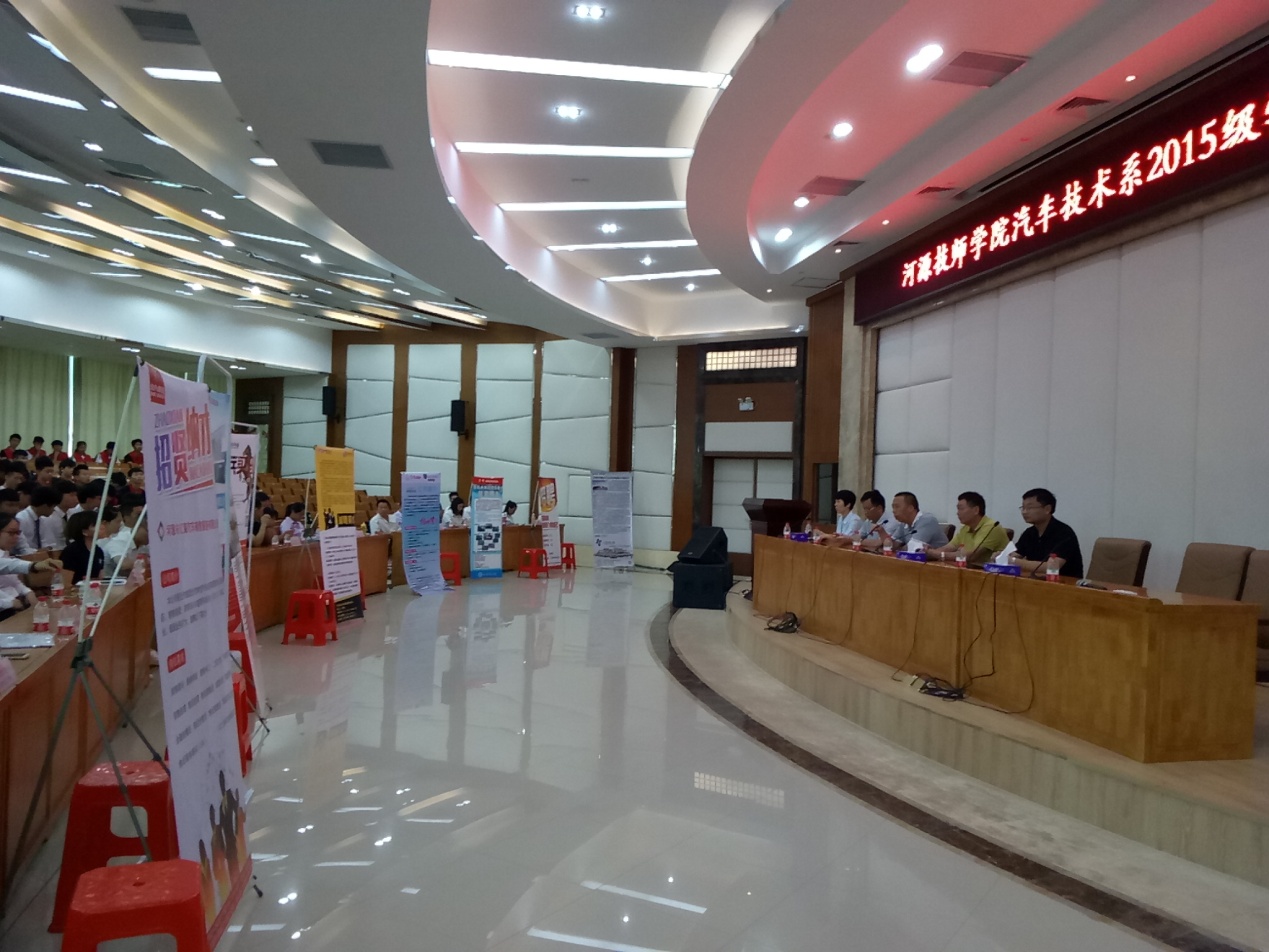 6月12日上午9:00,在我校图书馆报告厅汽车技术系召开15级学生供需见面会,本次来校招聘企业共15家,均是河源市大型汽车企业,预计招聘汽车各专业岗位共296人,学院领导张海峰副院长出席招聘会,并作重要讲话,河源市汽车协会,系部领导出席参加。同学们踊跃报名,现场火热。