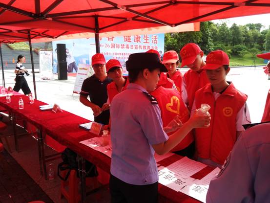 今年6月26日是第30个国际禁毒日,今天上午,河源市禁毒委在客家文化公园举行“6·26”国际禁毒日宣传活动。副市长、市禁毒委主任、市公安局局长范秀燎、市政法委副书记、禁毒委副主任黄镜明、团市委副书记李冰,市禁毒委各成员单位委员出席了上述活动。sunbet申搏选派了汽车技术系郑文富、张宇飞老师带领学生志愿者参加了活动。