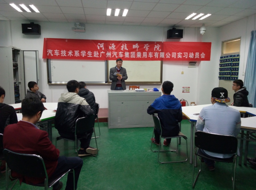 2017年12月1日上午9:30,汽车技术系在实训楼206召开学生赴广州汽车集团传祺乘用车有限公司跟岗实习动员会。经过面试我系有25位同学被这一世界500强企业录用,学生将于下周一统一到企业实习,系部非常重视,由谢平副主任对学生实习安排进行通知,石功名主任做了实习动员会讲话。