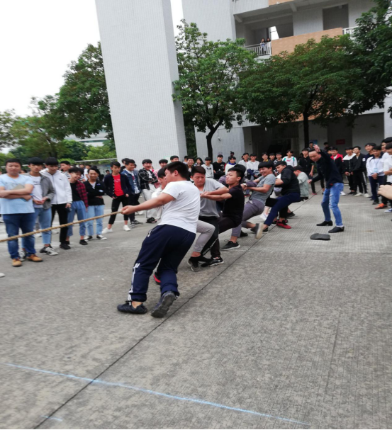 2018年10月18日,汽车技术系在8号楼广场举行 “凝心聚力展风采 扬我男儿巅峰来”拔河比赛。