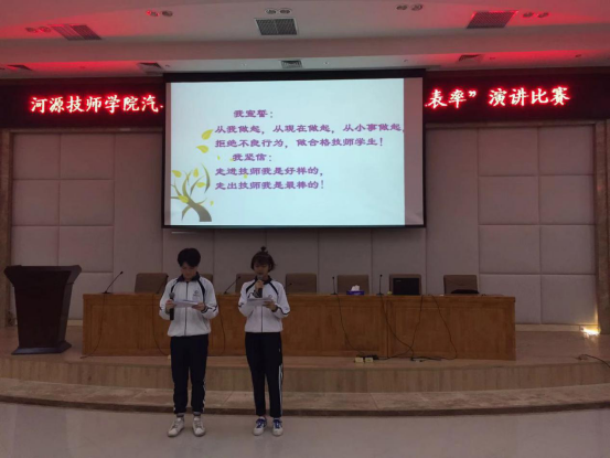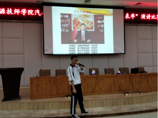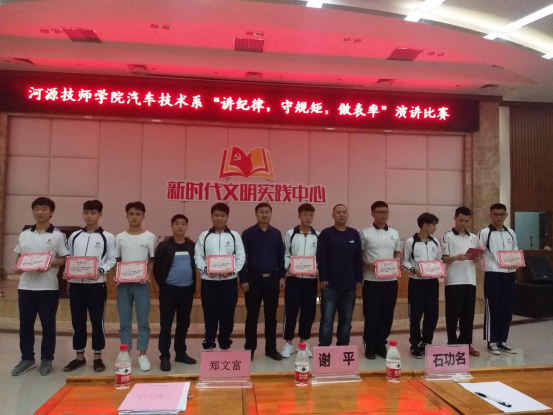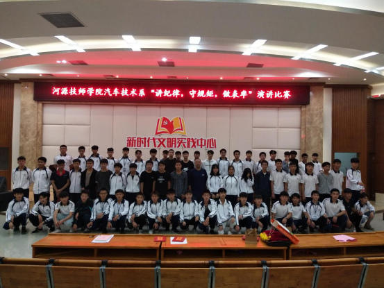 为严格规范学生日常行为,提高思想认识,更好地成长为德才兼备的技能人才,2018年12月5日,汽车技术系在图书馆报告厅举办了“讲纪律、守规矩、做表率”演讲比赛。汽车技术系党支部书记、主任石功名,副主任谢平,系团总支书记郑文富出席,专业教师李发船、艾文军、梁海深和张宇飞担任比赛评委。