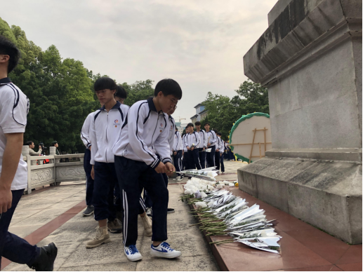 (图四)团员学生瞻仰墓碑并绕纪念碑一圈