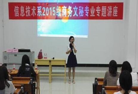 2017-05-04信息技术系2015级商务文秘专业专题讲座为进一步提升商务文秘专业学生专业技能和综合素质,拓宽学生的就业路,为学生的毕业设计汇报提供实践参考,2017年4月26日晚,sunbet申搏信息技术系在培训楼阶梯教室厅开展“信息技术系2015级商务文秘专业专题讲座”。讲座邀请了河源著名主持人、艾语...