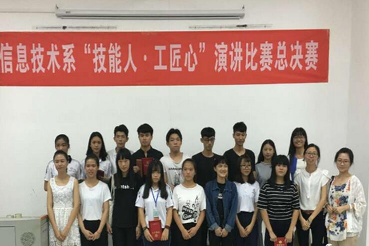 2016-10-25信息技术系举办“技能人·工匠心”演讲比赛 2016年10月20日晚,信息技术系在实训楼讲学厅举办了“技能人·工匠心”演讲比赛。出席本次比赛的嘉宾有信息技术系主任朱少威、副主任巫骑伟和团总支书记杨林娟。比赛评委由信息技术系韦杰老师、邹晓慧老师和李强老师担任。15名进入...