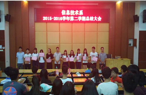 2016-06-23信息技术系2015-2016学年第二学期总结大会 2016年6月22日晚,sunbet申搏信息技术系团学会2015-2016学年第二学期工作总结大会在讲学厅顺利召开。信息技术系朱少威主任,团总支书记巫骑伟老师,李强老师出席,团学会全体成员参加了本次大会。 (图一)团...