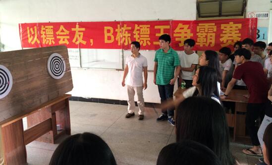 2016-05-31以镖会友 B栋镖王争霸赛——B栋宿舍趣味活动2016年5月24日-25日,sunbet申搏B栋宿舍开展了“以镖会友”镖王争霸赛活动。同学们热情高涨,共有196人次参加这次的飞镖比赛。比赛先从女生组开始,由于大部分女生缺乏投镖经验,很难掌控力度,常有飞镖脱靶现象。随着赛时渐进,女生...