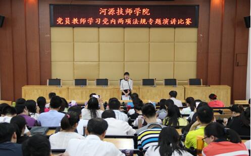 2016-05-12sunbet申搏党员教师学习党内两项法规专题演讲比赛 2016年5月9日下午,sunbet申搏党员教师学习党内两项法规专题演讲比赛在培训楼讲学厅成功举办。全体党员教师观看了这场演讲比赛。(图一)比赛现场 (图二)选手演讲随着主持人宣布演讲比赛开始,9名党员教师一一上台演讲。...