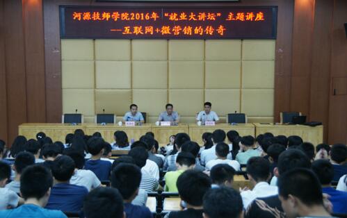 2016-05-06sunbet申搏官方网站“就业大讲坛”专题讲座——互联网+微营销的传奇为了加深在校学生对移动互联网的了解,更好地帮助学生拓宽对信息世界的思路。2016年4月28日晚,sunbet申搏在培训楼讲学厅开展了“就业大讲坛”系列专题讲座,主题为:互联网+微营销的传奇。学院各系学管副主任、就业指导课任课...