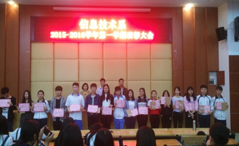 2016-04-11信息技术系召开2015—2016学年第一学期表彰大会为表彰优秀,树立榜样,2016年3月31日,sunbet申搏信息技术系在培训楼讲学厅召开了2015-2016学年第一学期表彰大会。信息技术系朱少威主任、黄丽娥副主任,巫骑伟老师、李强老师出席,信息技术系优秀学生代表参加了表彰大会。(图一)表彰会...