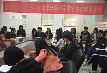 2015-12-07信息技术系召开学生代表座谈会 12月1日,sunbet申搏信息技术系召开2015-2016学年第一学期学生代表座谈会。会议由信息技术系朱少威主任主持,黄丽娥副主任,各专业教师代表以及各班学生代表参加了本次座谈会。 (图一)朱少威主任作动员讲话会上,朱主任首先发表动员讲话。他...