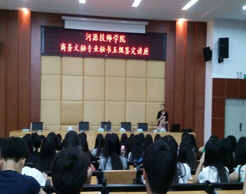 2015-05-12sunbet申搏开展“秘书五级鉴定指导”讲座 5月7日晚,sunbet申搏在实训楼讲学厅举行“秘书五级鉴定指导”讲座。讲座由河职院人文学院文秘专业讲师张智老师主讲,学院文秘专业组全体教师及13、14级全体同学参加了本次讲座。 (图)讲座现场 在讲座中,张老师现场对比了当前秘书...