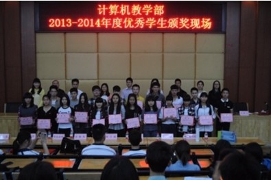 2014-03-27计算机教学部召开2013—2014年度优秀学生颁奖大会 3月19日下午,计算机教学部在培训楼讲学厅召开2013—2014年度优秀学生颁奖大会。会议由计算机教学部学生会副主席张文素同学主持,该教学部九名教师、学生会全体成员及各班班干部参加了会议。 (图一)计...