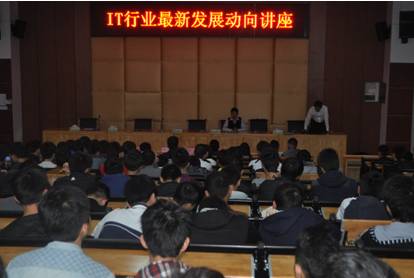 2013-11-21计算机教学部举行“IT行业最新发展动向”讲座 11月19日晚,计算机教学部在培训楼讲学厅举行“IT行业最新发展动向”讲座。讲座特地邀请了北大青鸟广东省服务中心的鲁迎春老师为北大青鸟专业学生介绍当前IT行业发展动态,令该专业学生受益匪浅。 (图一)讲座...