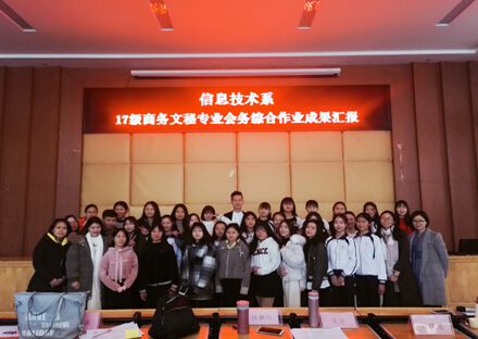 信息技术系2017级商务文秘专业“会务综合作业”成果汇报 为让学生综合运用本学期课程所学的知识与技能进行实战演练,使学生巩固会议的组织流程与服务要领,检测和提高学生的专业素质与实践技能,信息技术系2017级商务文秘专业学生于2018年1月12日上午在培训楼阶梯教室进行了“...