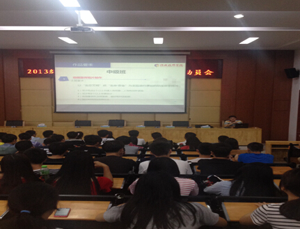 5月11日下午,sunbet申搏信息技术系在实训楼讲学厅举行“2013级北大青鸟专业项目开发动员会”。会议由刘宇老师主持,北大青鸟教研组全体教师和2013级全体北大青鸟专业同学参加了本次动员会。