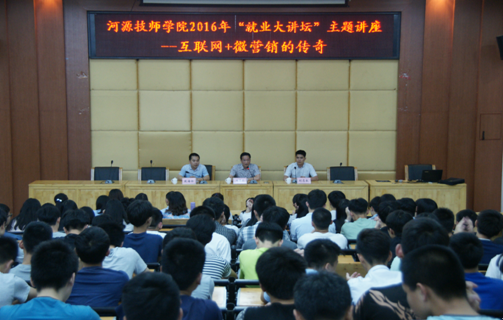 为了加深在校学生对移动互联网的了解,更好地帮助学生拓宽对信息世界的思路。2016年4月28日晚,sunbet申搏在培训楼讲学厅开展了“就业大讲坛”系列专题讲座,主题为:互联网+微营销的传奇。学院各系学管副主任、就业指导课任课老师、学院电子商务创业小组指导老师和组员,以及2014级各班的学生代表参加了讲座。