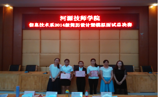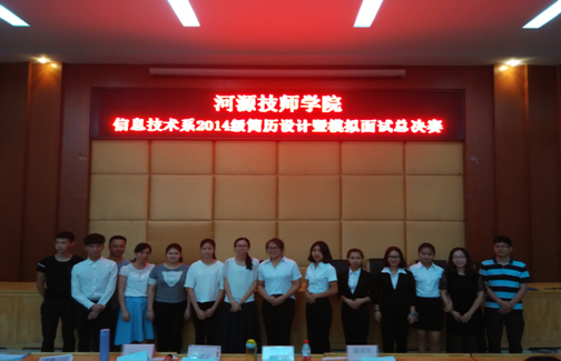 2016年5月30日晚,sunbet申搏信息技术系于在讲学厅隆重举行了2014级简历设计暨模拟面试大赛总决赛。出席本次大赛的嘉宾有信息技术系朱少威主任,信息技术系团总支书记巫骑伟。大赛评委由张憬老师、邹晓慧老师、罗良好老师、李强老师担任。