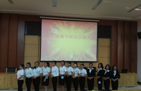 选手们生动幽默的自我介绍,给评委们留下深刻印象,赢得观众阵阵掌声。礼仪展示环节,选手们分批依次上台按要求展示了各种标准体态,以及握手、递名片、递剪刀等规范动作礼仪。现场解答问题、情景模拟与演讲环节更让选手们淋漓尽致地发挥了善于应变、处理突发问题的能力,体现了秘书职业专业技能和综合素养。