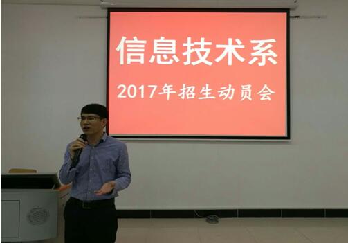2017年4月5日晚,信息技术系在实训楼阶梯教室召开2017年招生工作动员会。信息技术系朱少威主任主持会议并发表讲话,信息技术系各班班主任以及招生积极分子参加了会议。