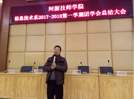 2018年1月11日晚,信息技术系在培训楼讲学厅召开了团学会学期总结大会。信息技术系巫骑伟副主任出席,2016、2017级全体团学会成员参加了会议。