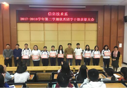 为表彰先进,信息技术系于2018年11月12日晚在培训楼讲学厅隆重举行了2017-2018第二学期优秀团学干部表彰大会。信息技术系朱少威主任、黄丽娥副主任、巫骑伟副主任出席,2017级、2018级全体团学干部和各班优秀班干部参加了会议。