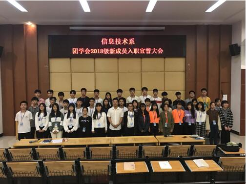 为推动信息技术系团学会更好发展,提高团学会干部的工作能力和热情。2018年10月22日下午,信息技术系团学会2018级新团学成员入职宣誓大会在培训楼讲学厅举行,巫骑伟副主任以及团学会成员参加了此次大会。