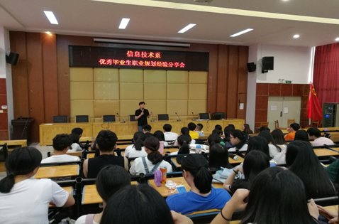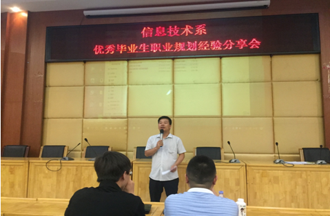 为进一步引导即将参加定岗实习的学生树立正确就业观,增强职业生涯规划意识,2018年5月30日下午,信息技术系在培训楼讲学厅举办了优秀毕业生职业规划经验分享会。分享会邀请了2015届电子商务专业优秀毕业生杨雪云和2015届商务文秘优秀毕业生付美霞两位同学主讲。系部电子商务专业2016级三年制学生聆听了演讲。