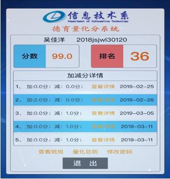 原来,为顺应无纸化办公的信息化进程趋势,方便班主任及时统计班级学生德育量化情况,信息技术系吴国辰老师自费购买了服务器和域名,在课余时间自主开发完成信息化平台建设,并命名为“德育量化分系统”。而此时,信息技术系正在组织开展班主任培训,学习使用该系统。