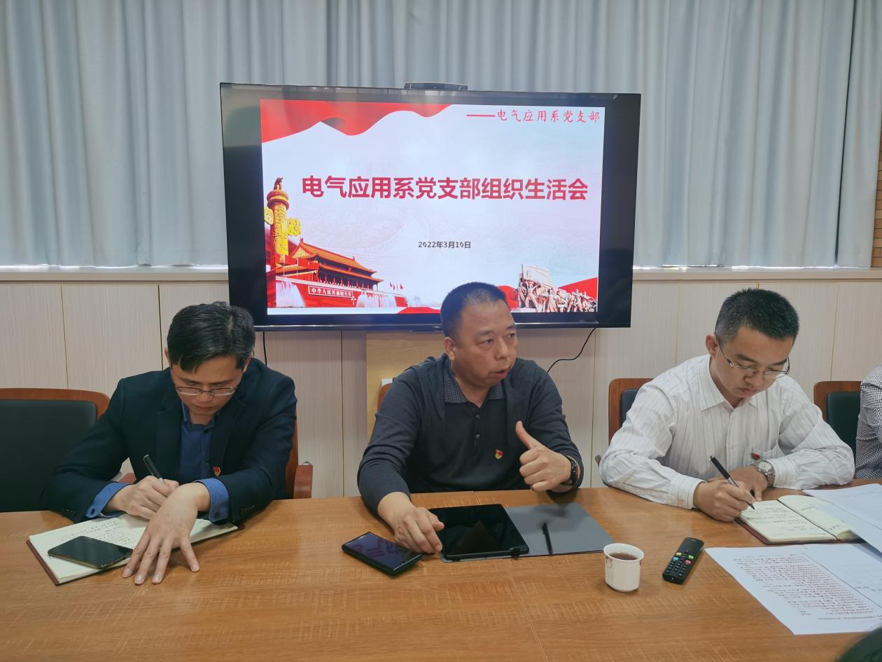 2022-03-11支部书记上党课——电气应用系党支部开展学习“习近平总书记关于教师与职业教育的论述”专题党课 2022年2月19日下午,电气应用系党支部在5205室开展了学习“习近平总书记关于教师与职业教育的论述”专题党课,电气应用系党支部书记、系主任张雪峰同志主讲,全系教师参...