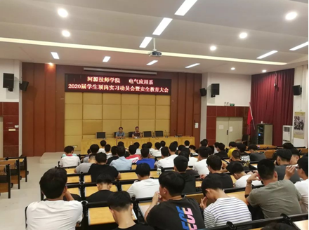 2019-10-082020届学生顶岗实习动员会暨安全教育大会(图一) 为了提高我系学生顶岗实习工作质量,指导学生做好顶岗实习的各项准备,6月12日晚,电气应用系在培训楼讲学厅举行了2020届学生顶岗实习动员会暨安全教育大会。会议由系主任张雪峰老师主持,系部...