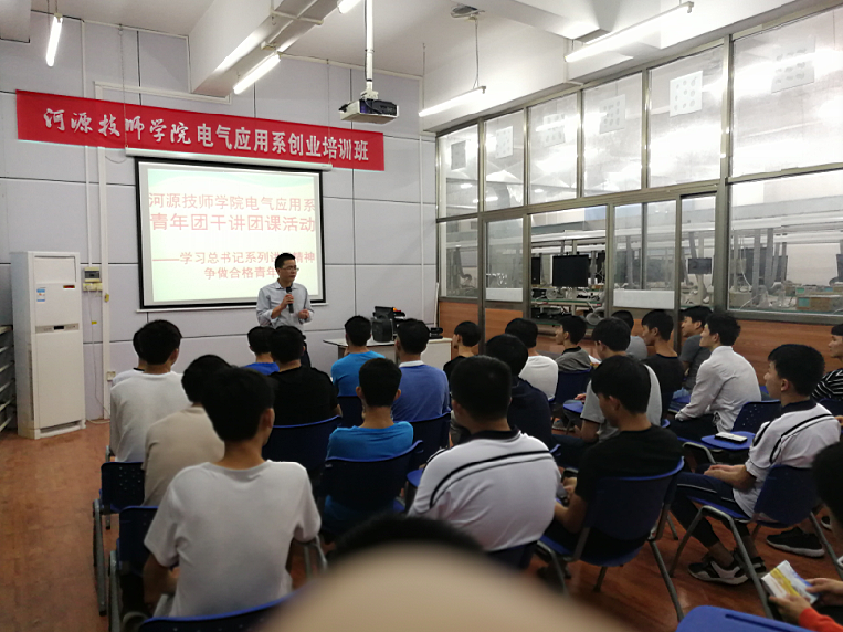2018-05-032018年4月27日晚,电气应用系在5209实训室开展了“学习习总书记系列讲话精神,争做合格青年”专题团课。团课由系团总支书记王文胜老师主讲,系部全体团员聆听了团课。图一 团课现场王老师指出,团员要充分发挥先锋带头作用,以习近平总书记重要系列讲话精神为指引,紧紧围绕...