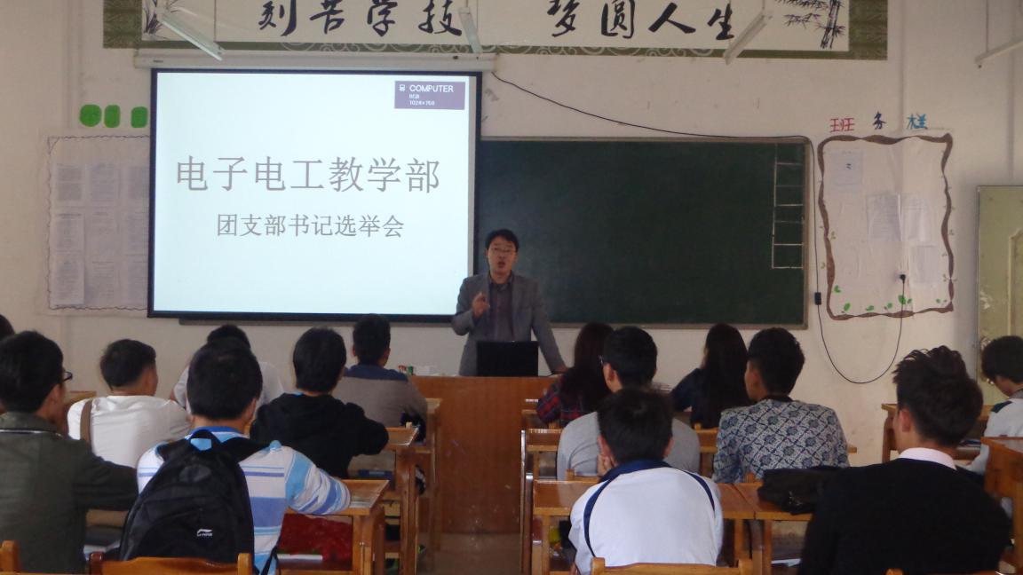 2014-03-062月27日下午,电子电工教学部各班级团总支书记以及学生会成员聚集在会议室,进行“团支部书记选举会”活动。 本次会议由电子电工教学部谷瑞光主任主持,大会严格按照组织程序,在监票人员的监督下,采用无记名投票选举办法,从候选人中选举新一届团支部书记,...