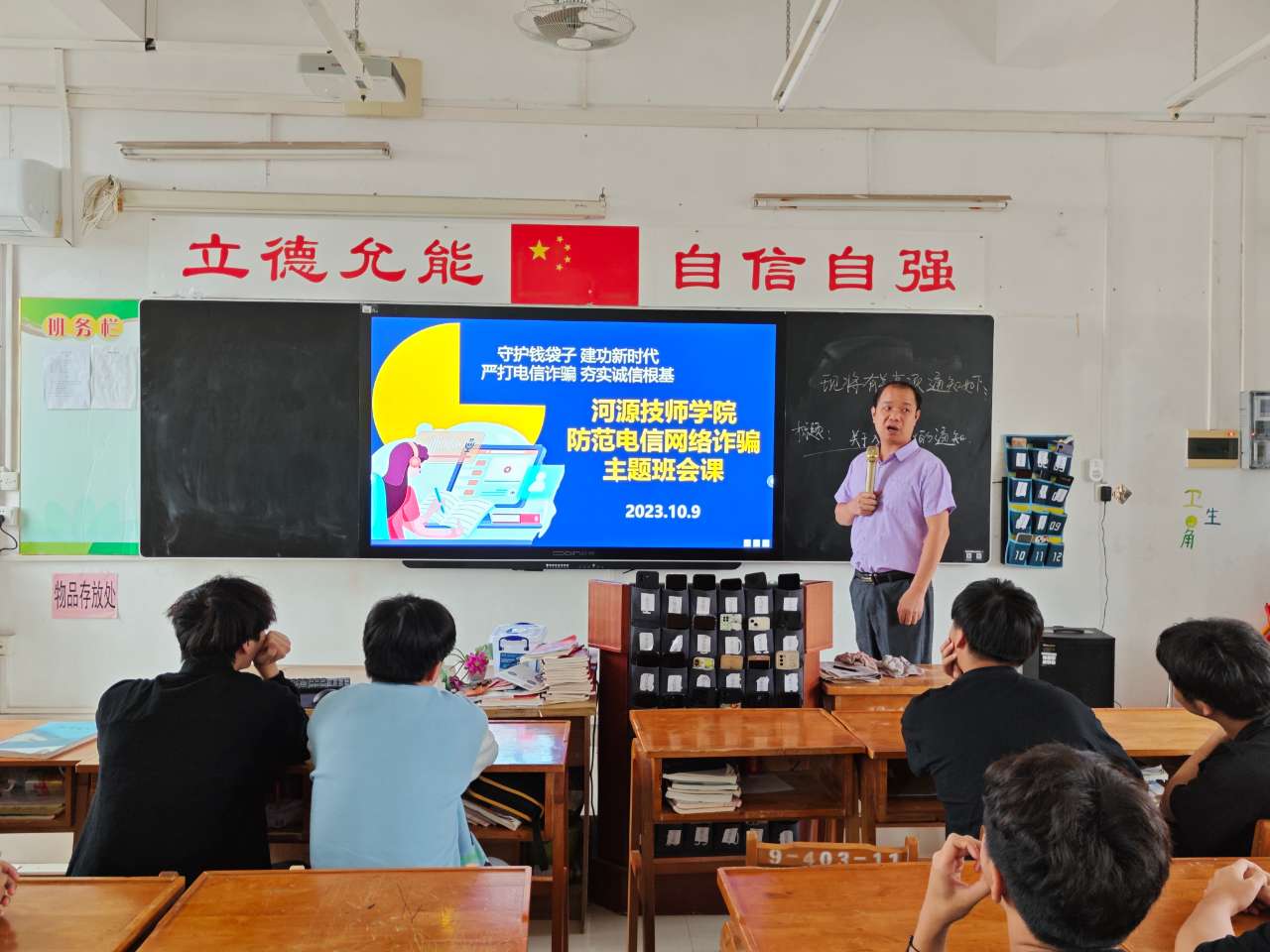 2023-10-17电气应用系开展”防范电信网络诈骗“主题班会课 为了增强学生的网络安全意识,防范网络诈骗事件的发生,2023年10月9日电气应用系全系班级开展了主题为”防范电信网络诈骗“班会课。本次主题班会旨在提高学生的自我保护能力,确保学生的财产安全...