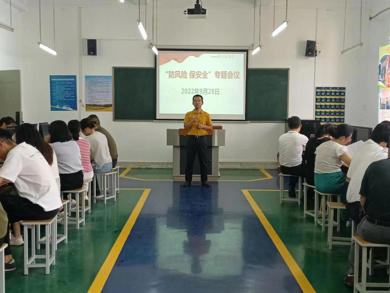 2022-10-19电气应用系召开“防风险保安全”专题会议2022年9月28日下午电气应用系在5204召开“防风险保安全”专题会议,会议由张雪峰主任主持,全体教师和班主任参加。首先,钟伟东副主任就分管教学工作就实训安全等方面做了具体部署,明确从10月1日起系部将启动实训室包干使用责任制度,强调...