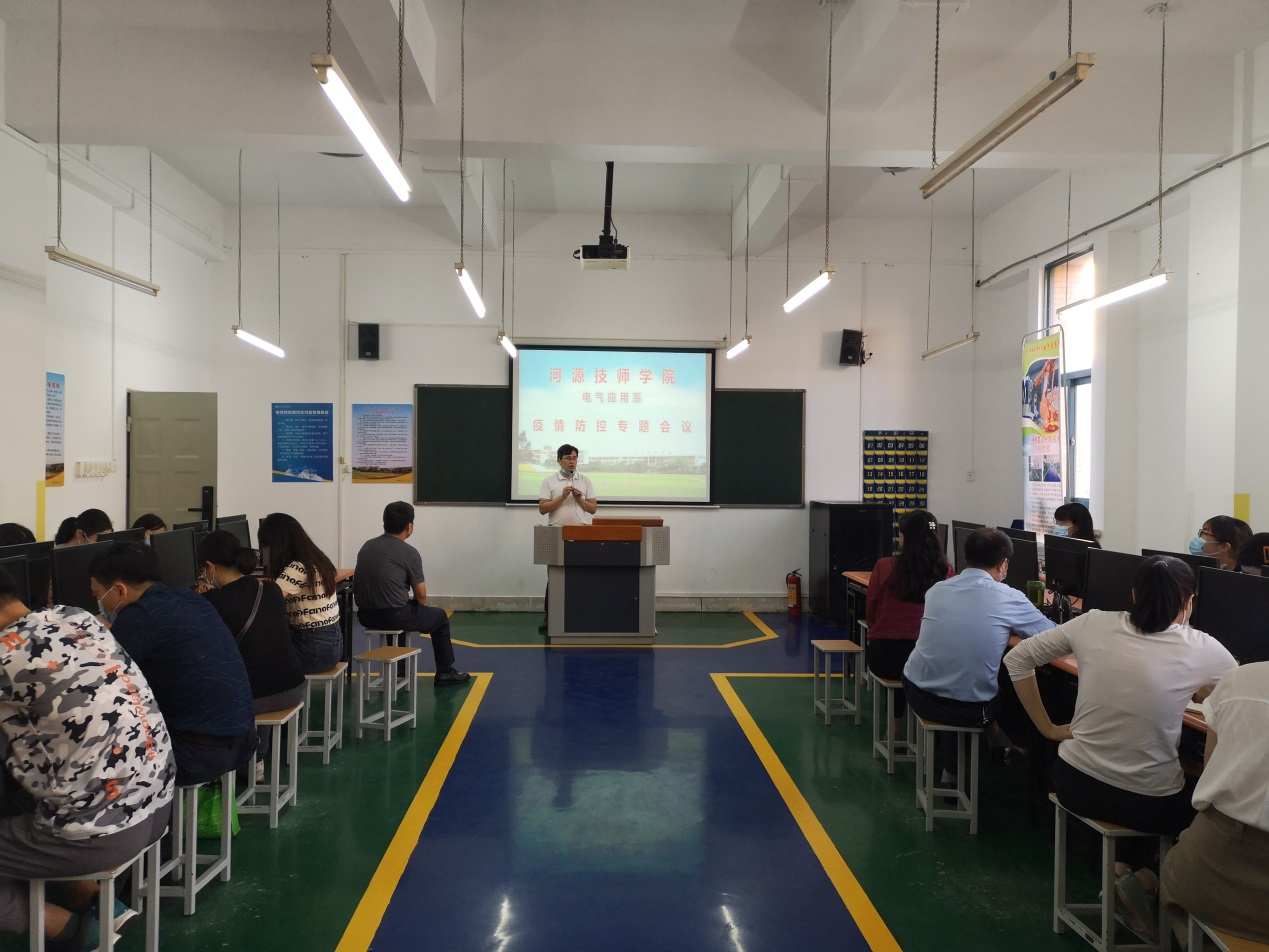2022-12-01电气应用系召开校园安全、疫情防控会议11月29日下午,电气应用系在5204召开“电气应用系校园安全、疫情防控会议”,全体教师和班主任参加。会议深入学习习近平总书记对疫情防控系列重要指示精神,全面贯彻市政府和学院有关疫情防控工作指示精神,结合学院疫情防控工作,系部进行再...