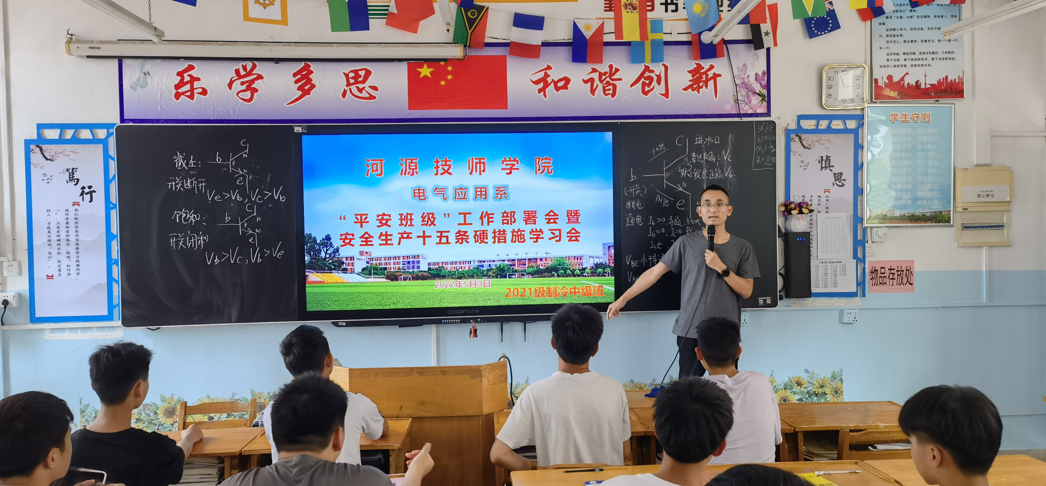 2022-05-19平安班级,安全生产措施学习会2021级制冷中级班平安工作班会5月9日,电气应用系2021级制冷中级班召开平安班级主题班会。在班会上,高志华老师提出按照学院和系部的平安工作布署,全班学生都应该统一思想,高度注意校园内的安全生产工作,牢牢铭记安全意识,时时刻刻抓安全。“平安...