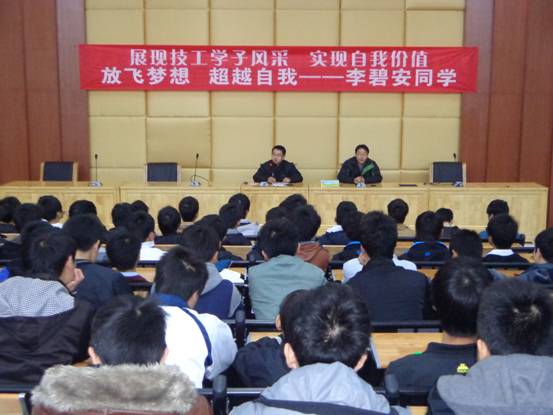 12月27日晚,我校在培训楼讲学厅召开表彰大会专场表彰李碧安同学。会议由电子电工教学部主任张雪峰主持,学校共300余名师生参加了表彰会。