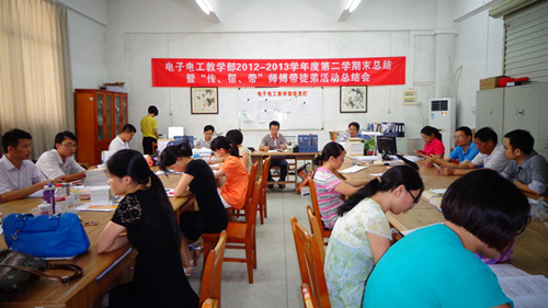 7月4日下午,电子电工教学部举行了“传、帮、带”师傅带徒弟活动总结会。会议由电子电工教学部主任张雪峰主持,教学部全体老师参加了会议。