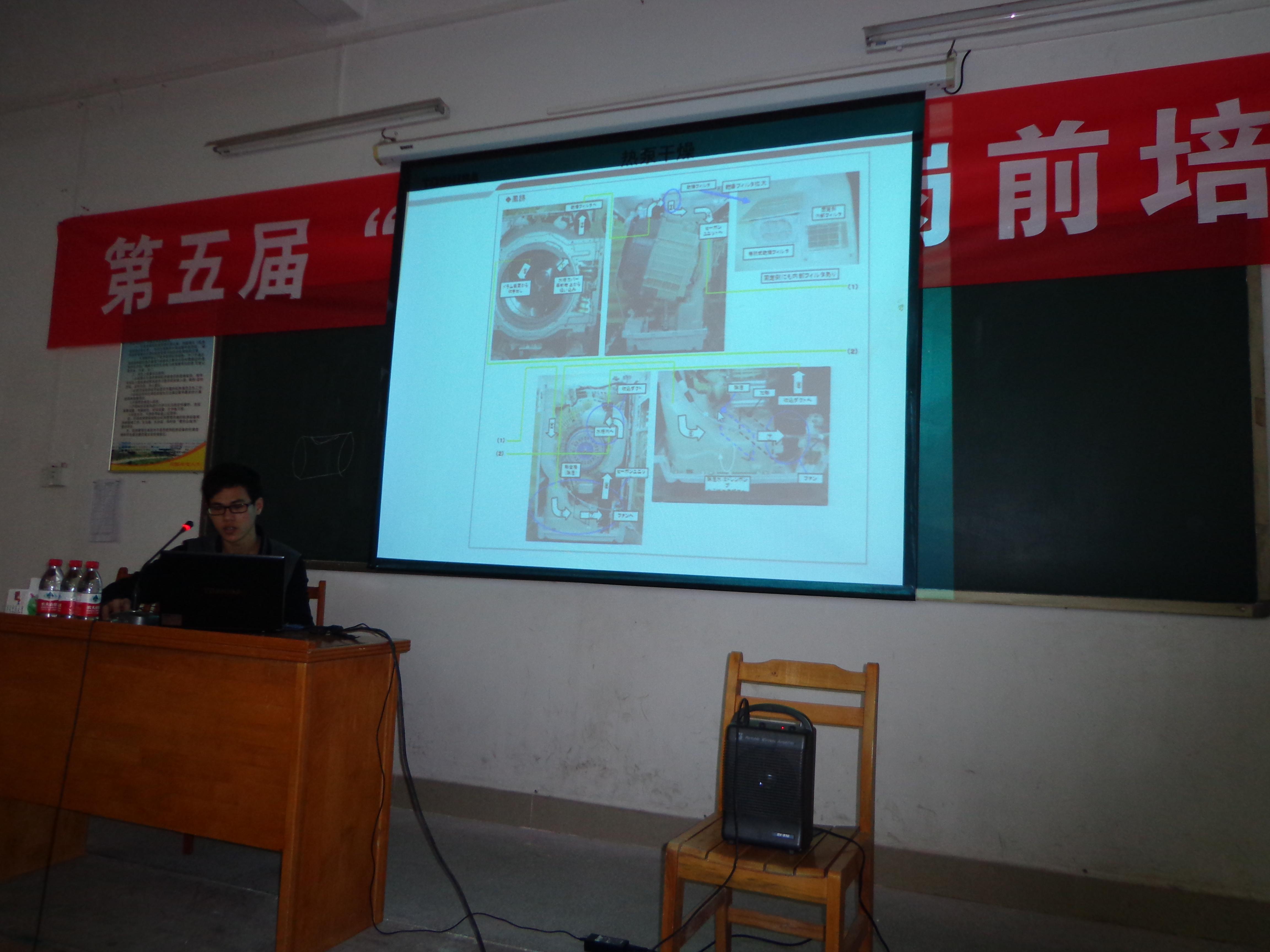 东芝公司的方鹏文工程师主要负责洗衣机的技术业务,他在培训会上用中国、日本、欧美三个地区人民不同的洗衣方式,巧妙的给学生们讲解了各种洗衣机的工作原理与结构,他生动有趣的授课方式获得学生们阵阵的掌声。方鹏文工程师从自身的经验出发,教导学生学知识一定要注意细节,并培养良好的工作习惯,将来肯定可以取得很高的成就。