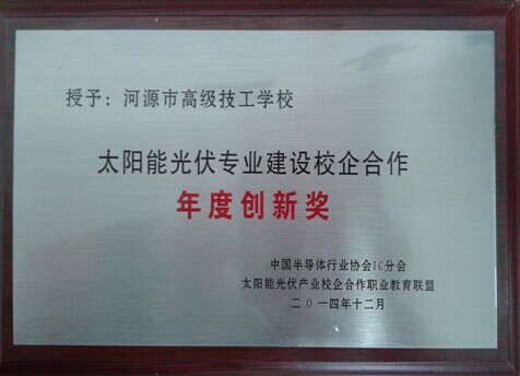我校荣获2014年太阳能光伏专业建设校企合作年度创新奖