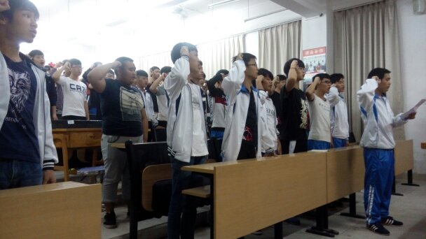 宣誓结束后,王老师寄语新生团员要严格履行团员义务,正确行使团员权利,在学习和生活中起模范带头、树立好榜样的作用。在仪式上,王老师及14级团学干部并为新生团员佩戴上团徽,我系126名新生正式了加入团组织。
